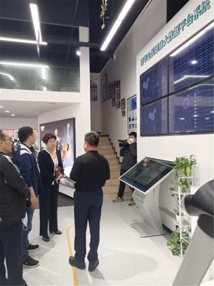 济南市体育局副局长王建军、体育产业处处长石德峰参观锐强合作品牌舒华品牌馆